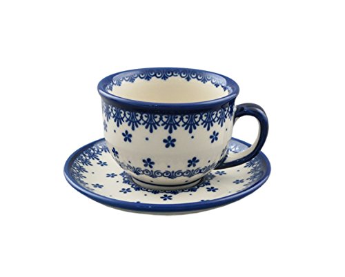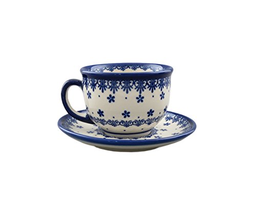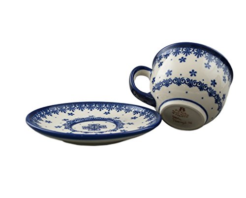Boleslawiec Style Pottery Hand Painted Polish Ceramic Vika Cup with a saucer 033-C-008