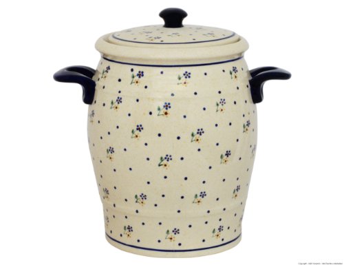 The Boleslawiec Rum Pot with its large opening (approx. Inside 13 cm, Outside 17 cm) is ideal for storing fruits, vegetables and to put on the kombucha mushroom. Dishwasher safe, heat resistant, microwave safe and acid resistant.
