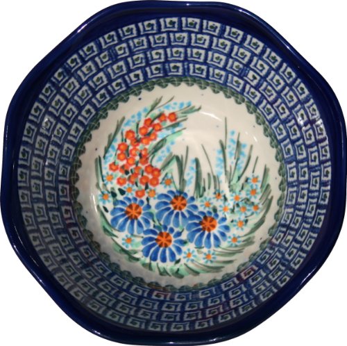 Polish Pottery Ceramika Boleslawiec 0423/169 Royal Blue Patterns with Blue Daisy and Orange Phlox Motif Bowl Viki 1, 3-1/4-Cup