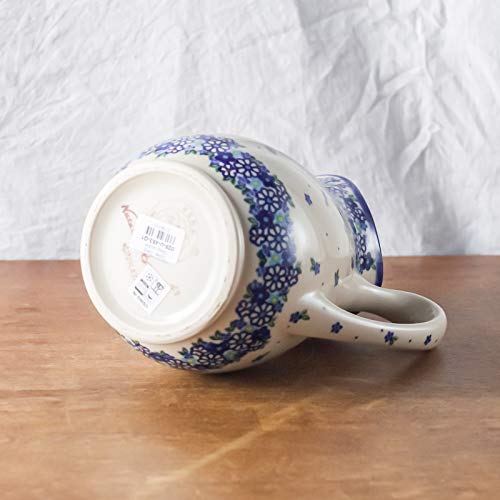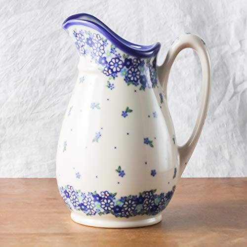 Polish Pottery, Handpainted and Handcrafted Water or Juice Jug 1.7L ― Small Blue Flowers Pattern (U453)