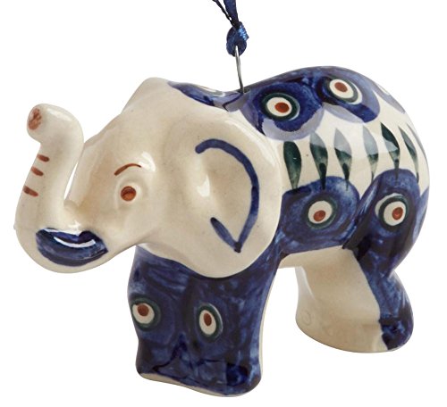 Polish Pottery Peacock Elephant Handmade Ceramic Christmas Ornament Ceramic, 1.25″L x 1.25″W x 3″H