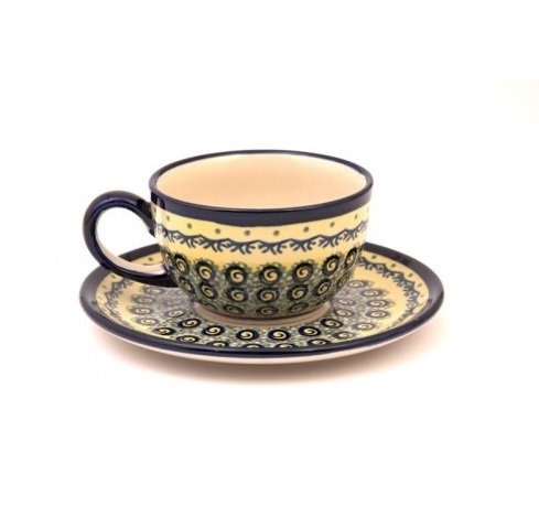 Premium, Original Bunzlauer Keramik – Classic Coffee and Tea Cup with Saucer 0.21 l Decor DU1