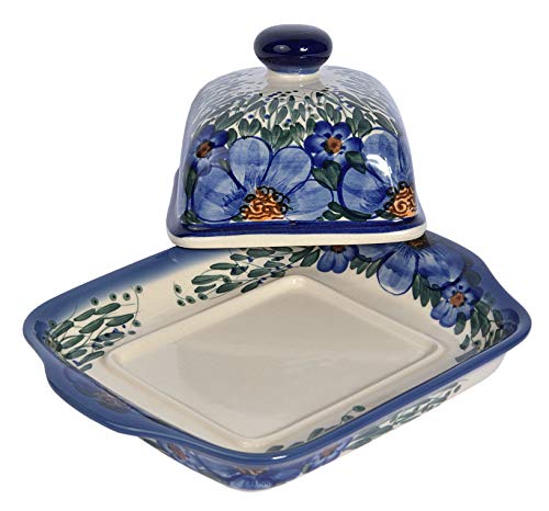 Traditional Polish Pottery, Handcrafted Ceramic Butter Dish with Lid, Boleslawiec Style Pattern, B.101.CREDO