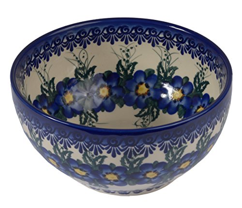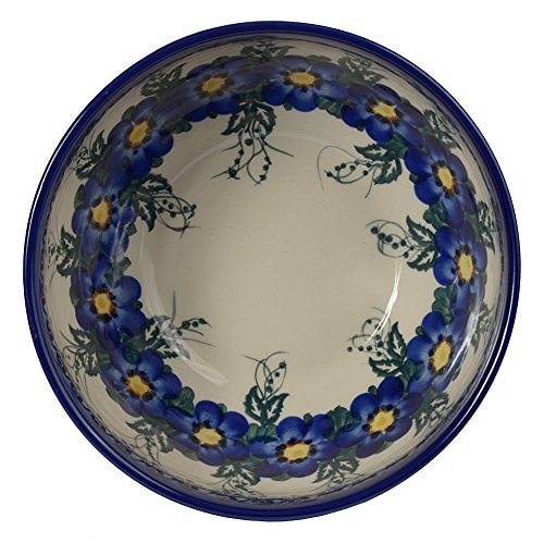 Traditional Polish Pottery, Handcrafted Ceramic Salad Bowl (1500ml), d.19cm, Boleslawiec Style Pattern, M.704.Pansy